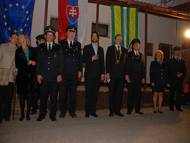 Pri tejto príležitosti mi dovoľte zvlášť privítať podpredsedu vlády SR a ministra vnútra SR Roberta Kaliňáka, krajskú predsedníčku strany SMER - SD a poslankyňu NR SR Renátu Zmajkovičovú, poslanca NR SR Mariána Kovačócyho, okresnú predsedníčku strany SMER – SD Már iu Beňovú. Dovoľte mi ďalej privítať hostí: primátora mesta Piešťany Rema Cicuttu, krajského riaditeľa HaZZ pplk. Mgr. Vladimíra Mrvu, okresného riaditeľa HaZZ pplk. Ing. Petra Galbu, člena prezídia a generálneho sekretára DPO SR Vendelína Horvátha, člena sekretariátu DPO SR Jána Parčiša, zaslúžilého člena DPO SR Viktora Šimu a ďalších pozvaných hostí a hasičov.