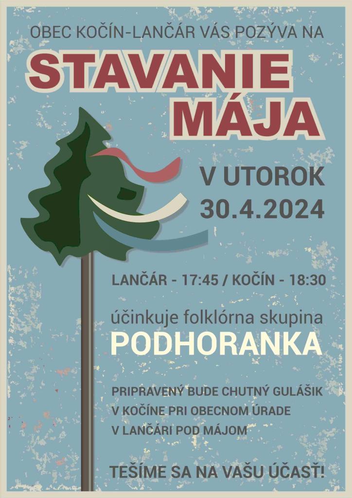 Stavanie mája v obci Kočín-Lančár - 30.04. 2024
